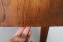 チーク家具の魅力は、製造から60年近く経過していても、このような質感を楽しむことができ、自分で愛着を持って”育てる”ことができるところです。日々のお手入れについては、ハワード社/オレンジオイル 又は フィーデンワックスでのお手入れをお勧めしています。”使う前が一番美しい”、のではなく、”使いながら暮らすことが楽しい”を体感していただけると嬉しいです。