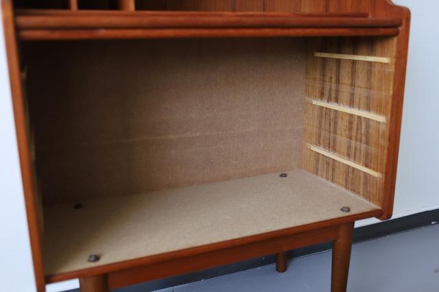 北欧デンマーク買付のライティングビューローです。ビューローとは、書棚や引き出しなどの収納家具とデスクが一体化した家具のことをいいます。これは天板を手前に引き出すことでデスクとして使用することが出来るタイプのデザインです。