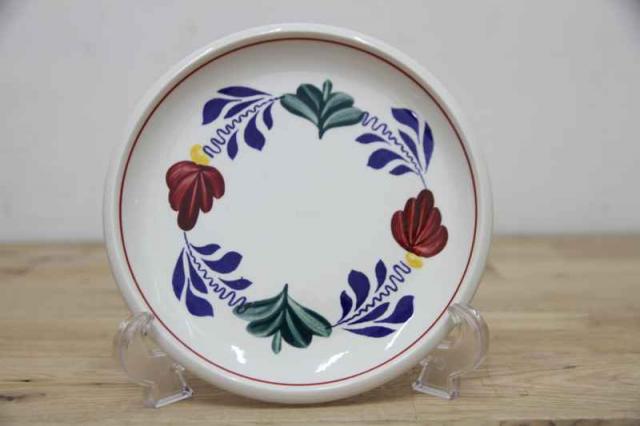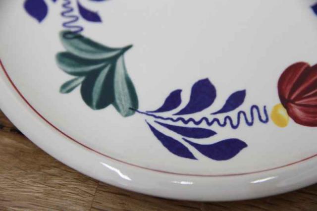 BOCH「Boerenbont」(製造年は1960年代から1980年代)シリーズのデザートプレート。グリーン・ネイビー・バーガンディーの色で連なるようにボタニカルデザインがハンドペイントにて描かれている素敵な一点。とても状態が良いヴィンテージ品です。