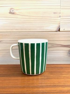 手描きタッチの温もりを感じさせるストライプ柄が印象的な「Piccolo」柄のマグカップです。
