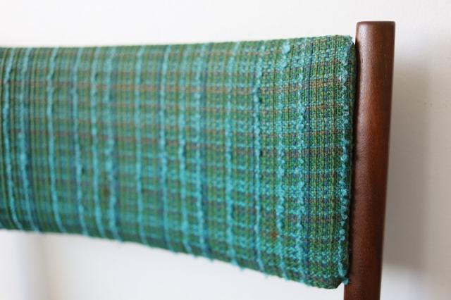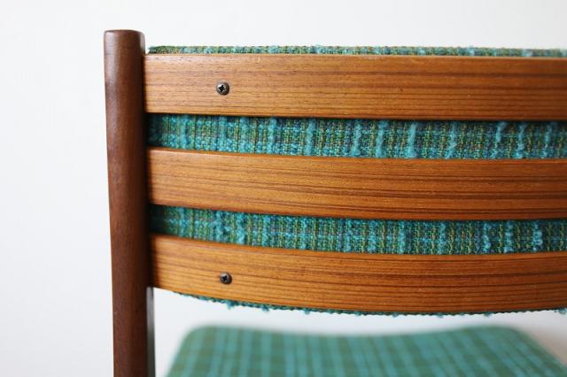 北欧デンマーク買付で出会った1960-70年代製のダイニングチェア。凹凸感ある織り生地の質感とブルーグリーンの鮮やかな色がとても印象的です。フレームの細かなディテールも大変美しく、どこから見ても満足できる一脚ではないでしょうか。