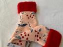温かさの秘密は、3重構造の特殊な編み方と、内側のもこもこした仕上げによるものです。