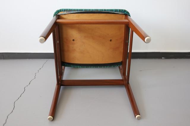 北欧デンマーク買付で出会った1960-70年代製のダイニングチェア。凹凸感ある織り生地の質感とブルーグリーンの鮮やかな色がとても印象的です。フレームの細かなディテールも大変美しく、どこから見ても満足できる一脚ではないでしょうか。