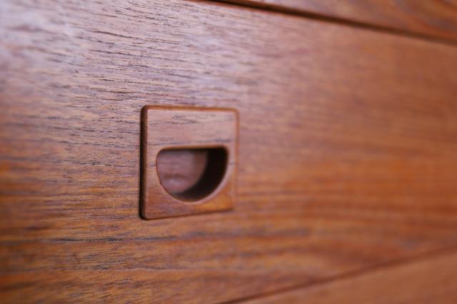 チーク家具の魅力は、製造から60年近く経過していても、このような質感を楽しむことができ、自分で愛着を持って”育てる”ことができるところです。日々のお手入れについては、ハワード社/オレンジオイル 又は フィーデンワックスでのお手入れをお勧めしています。”使う前が一番美しい”、のではなく、”使いながら暮らすことが楽しい”を体感していただけると嬉しいです。