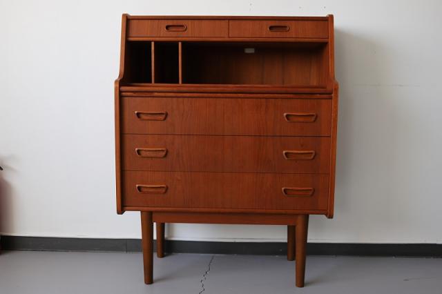 北欧デンマーク買付のライティングビューローです。ビューローとは、書棚や引き出しなどの収納家具とデスクが一体化した家具のことをいいます。これは天板を手前に引き出すことでデスクとして使用することが出来るタイプのデザインです。
