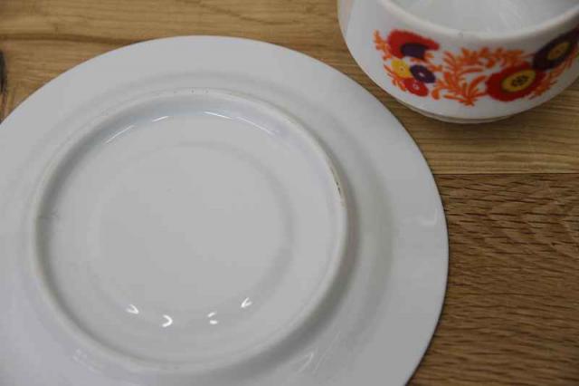 Made in Germany ドイツBavaria製ヴィンテージのカップ&ソーサーです。レトロな花柄プリントがどこか懐かしい感じの強い、昭和レトロにもありそうなデザインです。