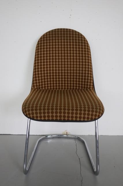 ドイツ買付便のカンチレバーチェア(カンティレバーチェア)です。4本脚ではなく片方だけで座面を支える仕組みの椅子のことで、「片持ち式」とも呼ばれたりします。レトロなファブリックとスタイリッシュな印象を与えるスチール製の脚。異素材ミックスなデザインが引き立つ素敵な椅子です。