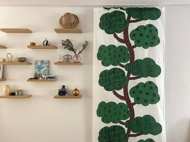 松の木が多く生い茂るフィンランドの森の中にいるような気持ちになるテキスタイルです。