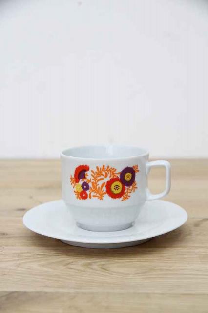 Made in Germany ドイツBavaria製ヴィンテージのカップ&ソーサーです。レトロな花柄プリントがどこか懐かしい感じの強い、昭和レトロにもありそうなデザインです。