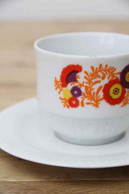 Made in Germany ドイツBavaria製ヴィンテージのカップ&ソーサーです。レトロな花柄プリントがどこか懐かしい感じの強い、昭和レトロにもありそうなデザインです。