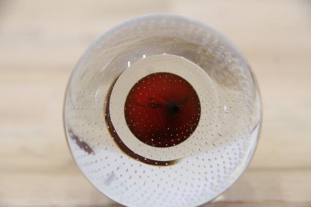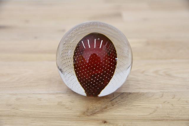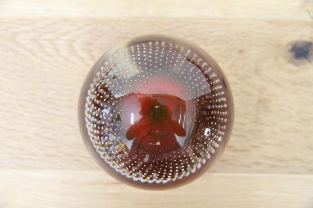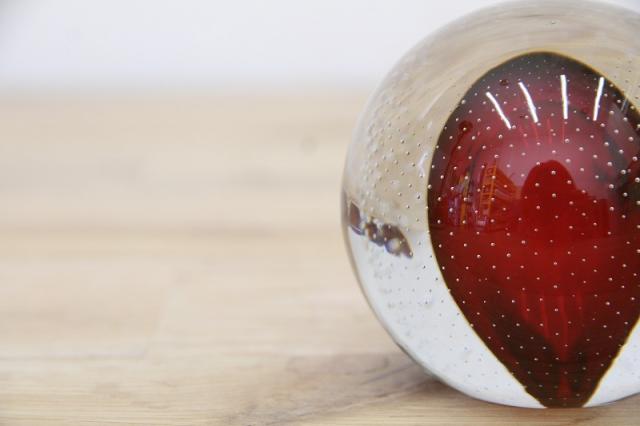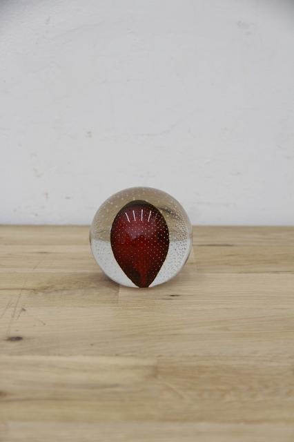 190年代製のMuranoGlassのペーパーウェイトです。真ん丸のクリアのガラスボウルの中に風船のように赤い色が。さらにガラスの塊の中には気泡を閉じ込められており大変な技術が詰まった逸品です。