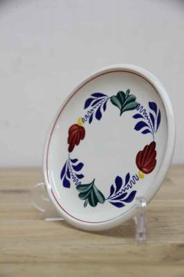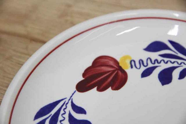 BOCH「Boerenbont」(製造年は1960年代から1980年代)シリーズのデザートプレート。グリーン・ネイビー・バーガンディーの色で連なるようにボタニカルデザインがハンドペイントにて描かれている素敵な一点。とても状態が良いヴィンテージ品です。