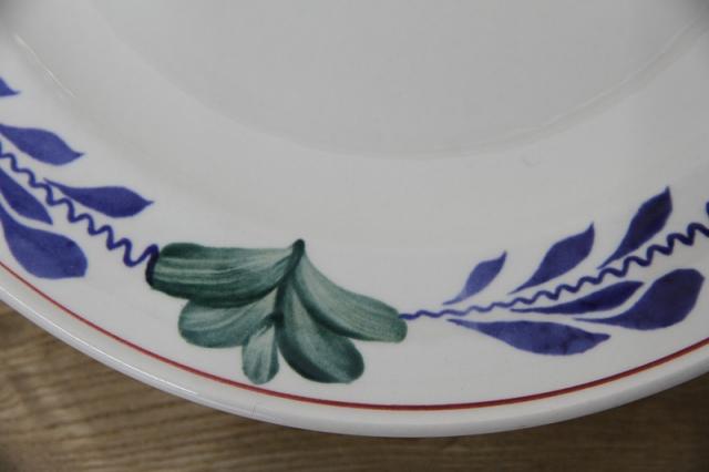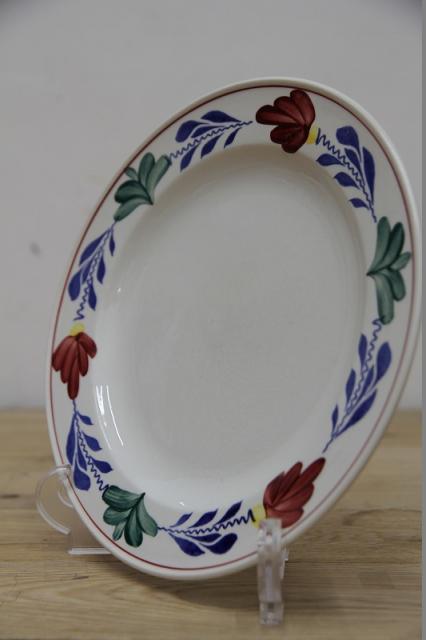 BOCH「Boerenbont」(製造年は1960年代から1980年代)シリーズのディナープレート。グリーン・ネイビー・バーガンディーの色で連なるようにボタニカルデザインがハンドペイントにて描かれている素敵な一点。とても状態が良いヴィンテージ品です。