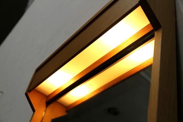 鏡の上部にはライトアップする照明付き。下元にスイッチが付いております。