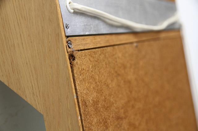 鏡は下のチェストにのせてネジで固定する作りになります。