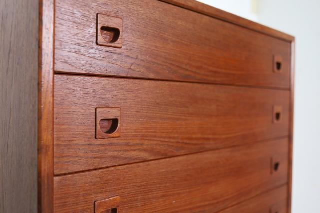 北欧デンマーク製のヴィンテージ品です。収納力のある5段チェストは、リビングや寝室で身の回りの小物や衣類の整理整頓に便利な家具です。