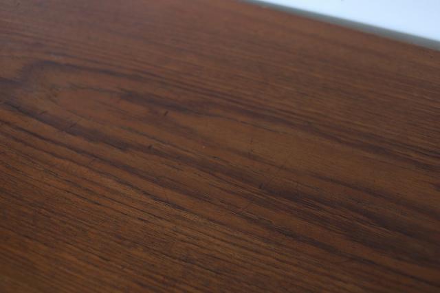 チーク家具の魅力は、製造から60年近く経過していても、このような質感を楽しむことができ、自分で愛着を持って”育てる”ことができるところです。日々のお手入れについては、ハワード社/オレンジオイル 又は フィーデンワックスでのお手入れをお勧めしています。”使う前が一番美しい”、のではなく、”使いながら暮らすことが楽しい”を体感していただけると嬉しいです。
