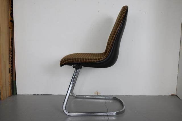 ドイツ買付便のカンチレバーチェア(カンティレバーチェア)です。4本脚ではなく片方だけで座面を支える仕組みの椅子のことで、「片持ち式」とも呼ばれたりします。レトロなファブリックとスタイリッシュな印象を与えるスチール製の脚。異素材ミックスなデザインが引き立つ素敵な椅子です。