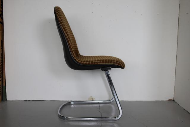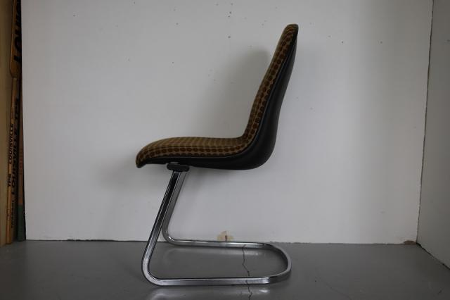 ドイツ買付便のカンチレバーチェア(カンティレバーチェア)です。4本脚ではなく片方だけで座面を支える仕組みの椅子のことで、「片持ち式」とも呼ばれたりします。レトロなファブリックとスタイリッシュな印象を与えるスチール製の脚。異素材ミックスなデザインが引き立つ素敵な椅子です。