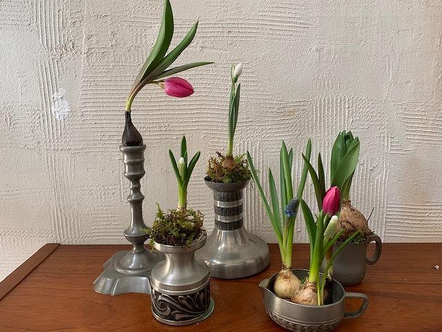 球根植物を添えることで、季節感を感じさせるコーディネートも楽しめます