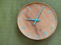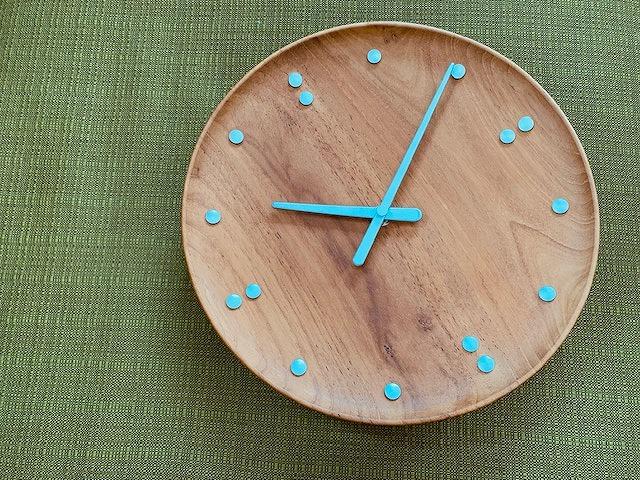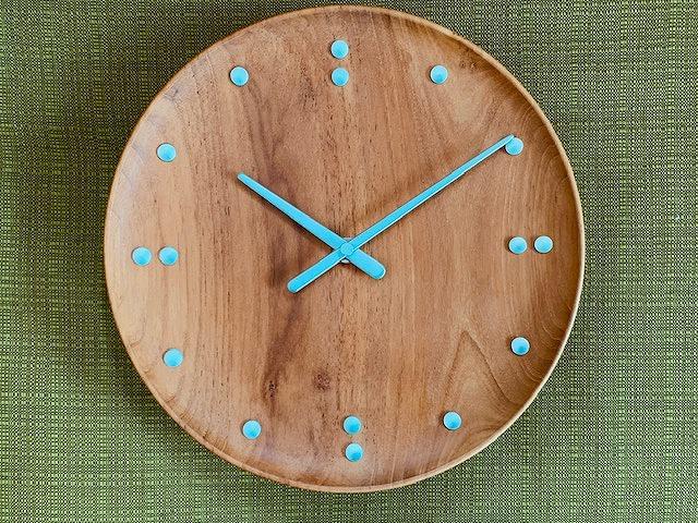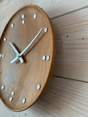 分針と時針も、木製の表面に沿ってわずかにカーブしています