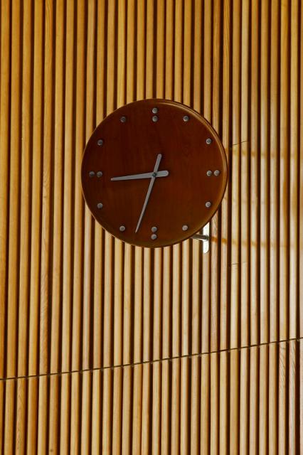 1950年にニューヨーク国連信託統治理事会会議場のインテリアの一部として、フィンユールによってデザインされたFJクロック。