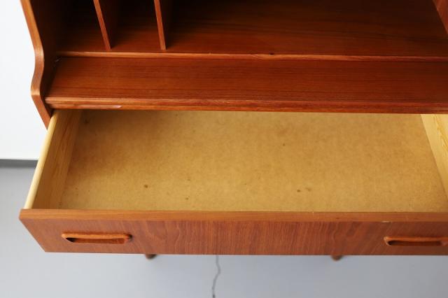 北欧デンマーク買付のライティングビューローです。ビューローとは、書棚や引き出しなどの収納家具とデスクが一体化した家具のことをいいます。これは天板を手前に引き出すことでデスクとして使用することが出来るタイプのデザインです。