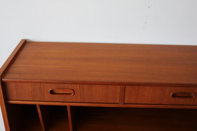 北欧デンマーク買付のライティングビューローです。ビューローとは、書棚や引き出しなどの収納家具とデスクが一体化した家具のことをいいます。これは天板を手前に引き出すことでデスクとして使用することが出来るタイプのデザインです。
