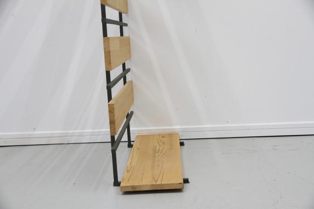 壁面に立てかけて使う目的で製作しています。自立していませんので、壁面に立てかけてお使いください。L型ですので、ぶら下げるアイテムの重量にご注意の上、お使いください。