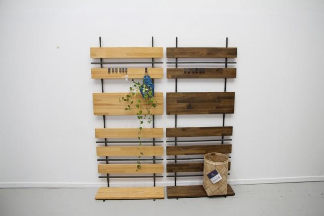 壁面に立てかけて使う目的で製作しています。自立していませんので、壁面に立てかけてお使いください。L型ですので、ぶら下げるアイテムの重量にご注意の上、お使いください。