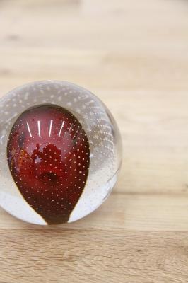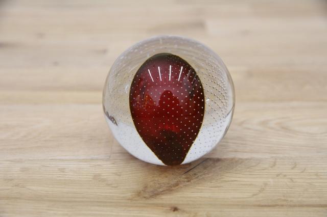 190年代製のMuranoGlassのペーパーウェイトです。真ん丸のクリアのガラスボウルの中に風船のように赤い色が。さらにガラスの塊の中には気泡を閉じ込められており大変な技術が詰まった逸品です。