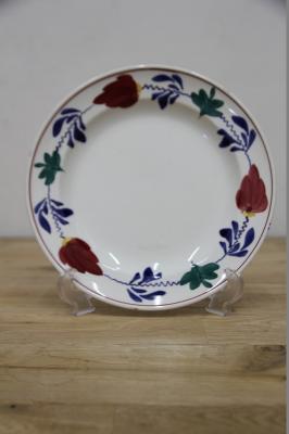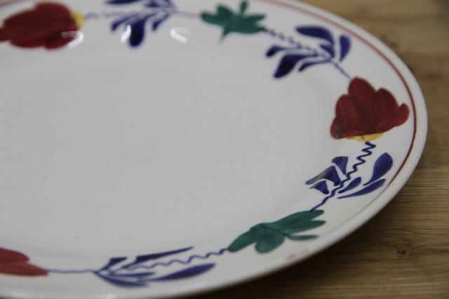 BOCH「Boerenbont」(製造年は1960年代から1980年代)シリーズのディナープレート。グリーン・ネイビー・バーガンディーの色で連なるようにボタニカルデザインがハンドペイントにて描かれている素敵な一点。とても状態が良いヴィンテージ品です。