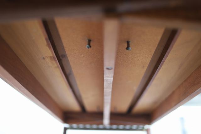●天板含め、細かなキズございます。脚のビス近くには気がえぐれている箇所がございます。詳細写真でお確かめください。