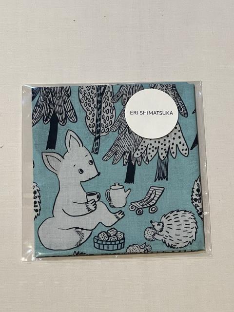 絵本『しずかなところはどこにある?』の登場人物たちがピクニックを楽しんでいる様子を描き下ろした爽やかな色合いのハンカチです。