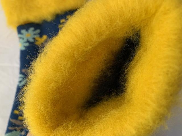 温かさの秘密は、3重構造の特殊な編み方と、内側のもこもこした仕上げによるものです。