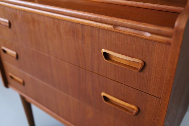 北欧デンマーク買付のライティングビューローです。ビューローとは、書棚や引き出しなどの収納家具とデスクが一体化した家具のことをいいます。これは天板を手前に引き出すことでデスクとして使用することが出来るタイプのデザインです。