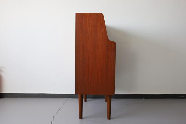 北欧デンマーク買付のライティングビューローです。ビューローとは、書棚や引き出しなどの収納家具とデスクが一体化した家具のことをいいます。これは天板を手前に引き出すことでデスクとして使用することが出来るタイプのデザインです。