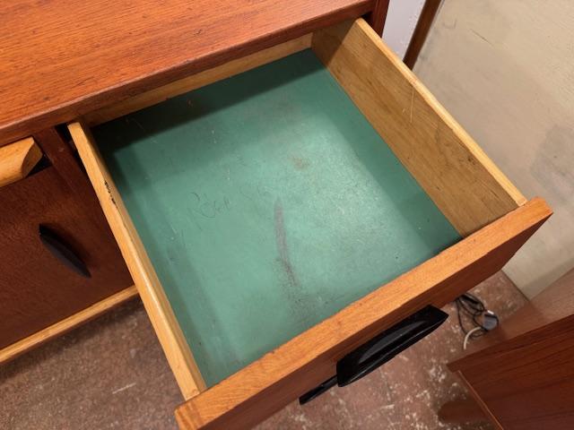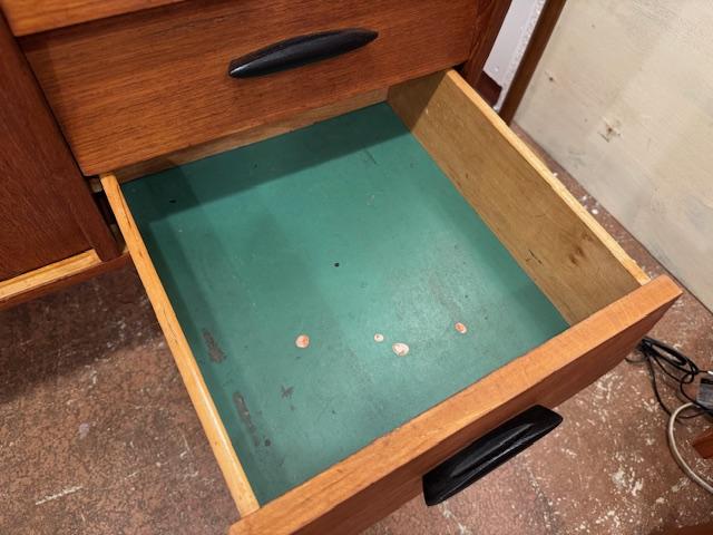 経年によるキズや引き出し内部の書き込みなどは見られますが、それもまた長い年月を経てきた証。新品にはない、時間がつくり出した風合いとして、この家具の個性となっています。
