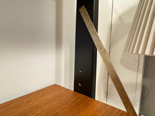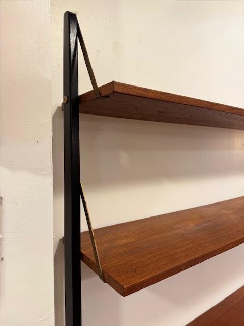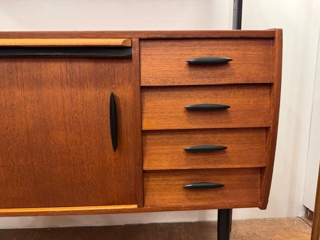 温かみのあるチーク材をベースに、ブラックのフレームが全体を引き締めるスタイル。直線的で無駄のないフォルムは、当時の北欧デザインが大切にしていた“機能美”をそのまま体現しています。